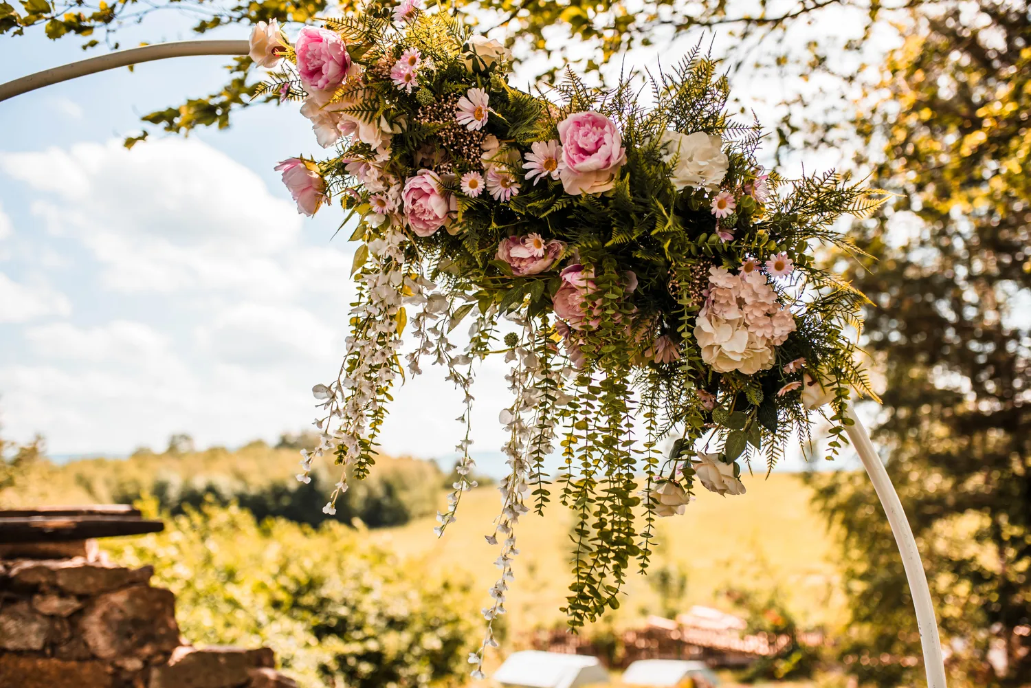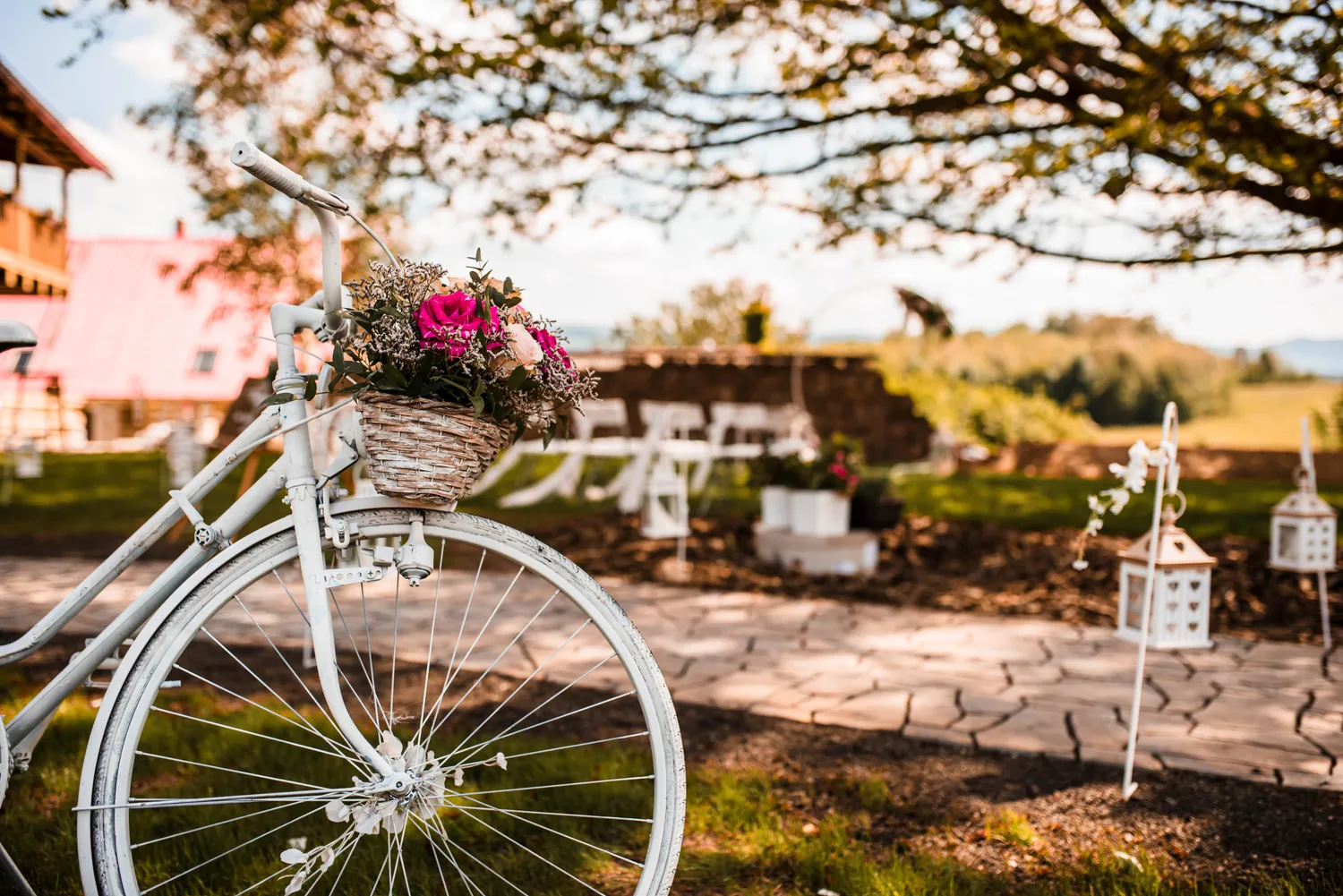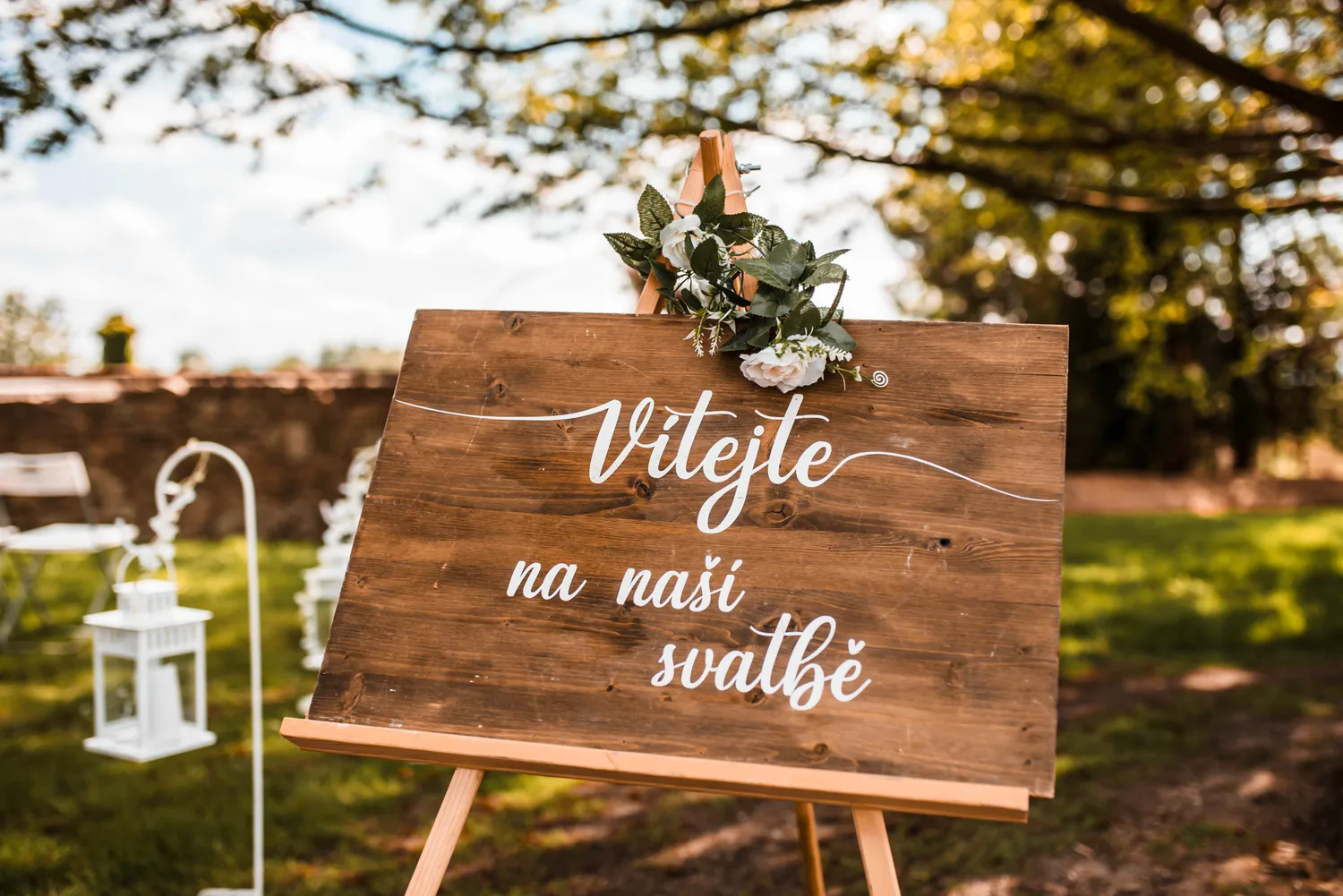 Rustikální styl, doplněný o květinové aranžmá a elegantní dekorace, které vytvářejí útulnou a romantickou atmosféru.