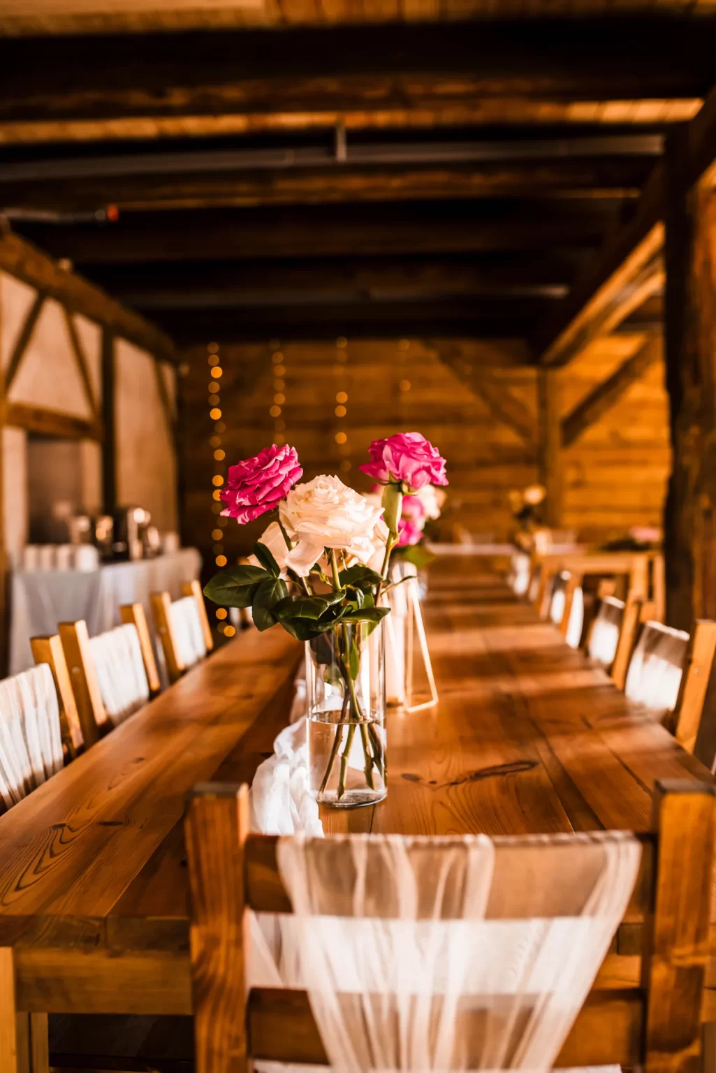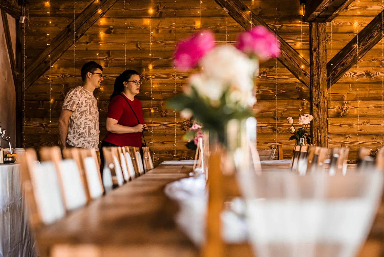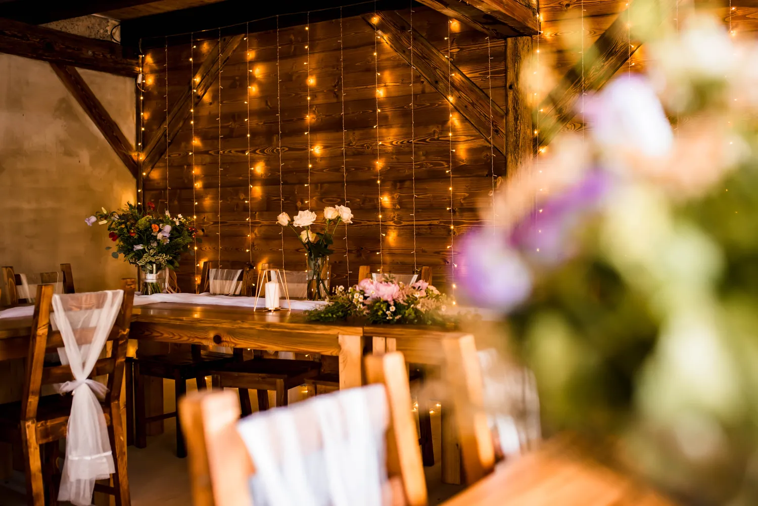 Výzdoba v Řasnické stodole je v rustikálním stylu s dřevěnými prvky a pečlivě vybranými detaily, které podtrhují kouzlo venkovského prostředí. Kombinace květinových aranžmá, svíček a jemných textilií vytváří příjemnou a romantickou atmosféru pro každou příležitost! Jsme schopni přizpůsobit výzdobu v Řasnické stodole přesně podle typu vaší akce, ať už se jedná o svatbu, firemní večírek, nebo rodinnou oslavu. Nabízíme širokou škálu dekorací a stylů, abychom vytvořili atmosféru, která dokonale odpovídá vašim představám a přáním.